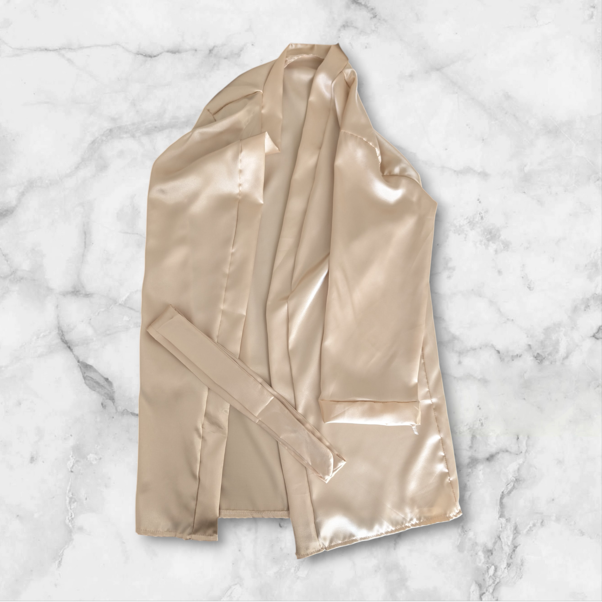 A matching satin robe with a classic wrap silhouette for effortless layering.